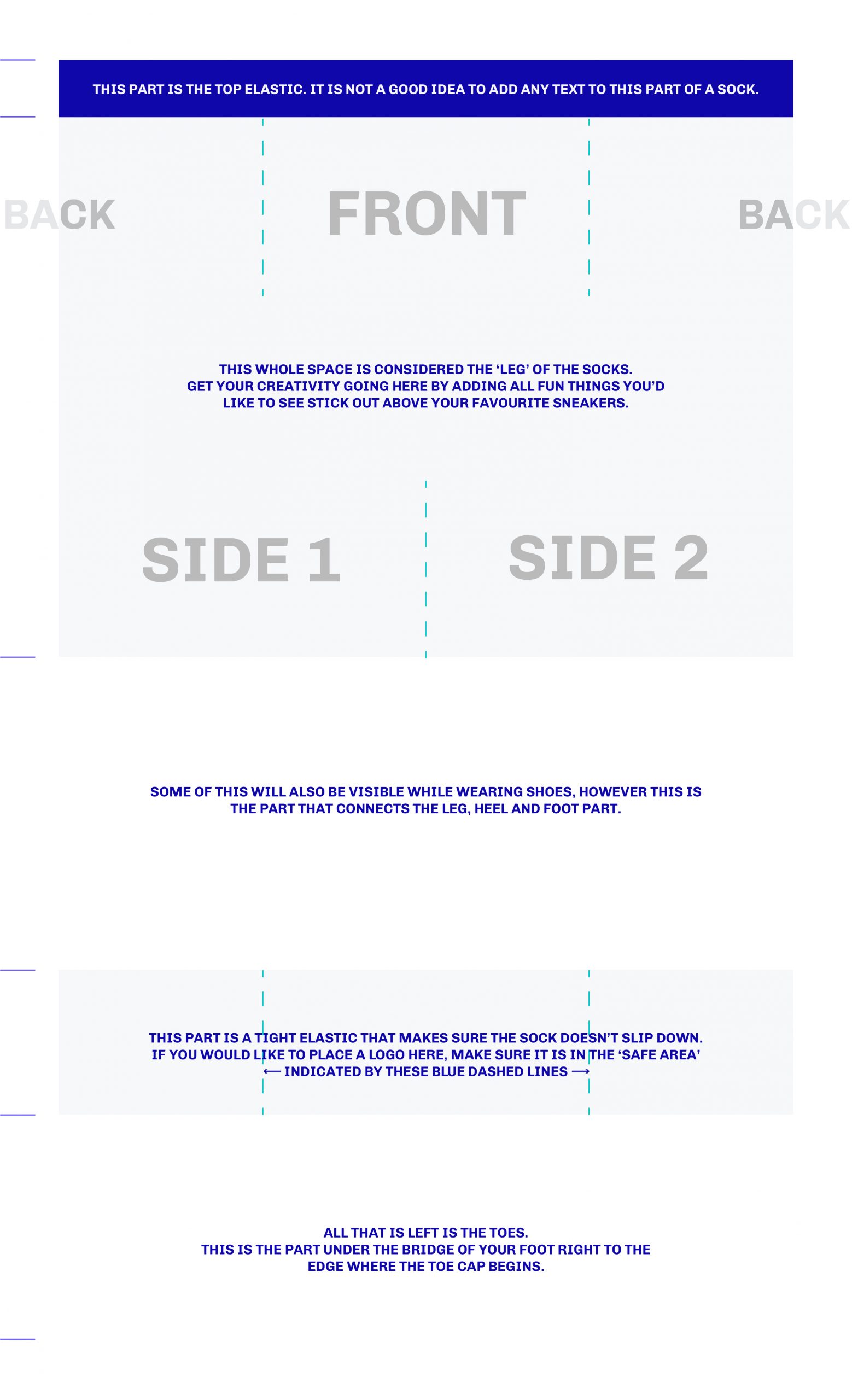 Here you’ll learn the ins and outs of Let’s get custom. We have tutorials, how to illustrations and articles on how to create your own sock.
